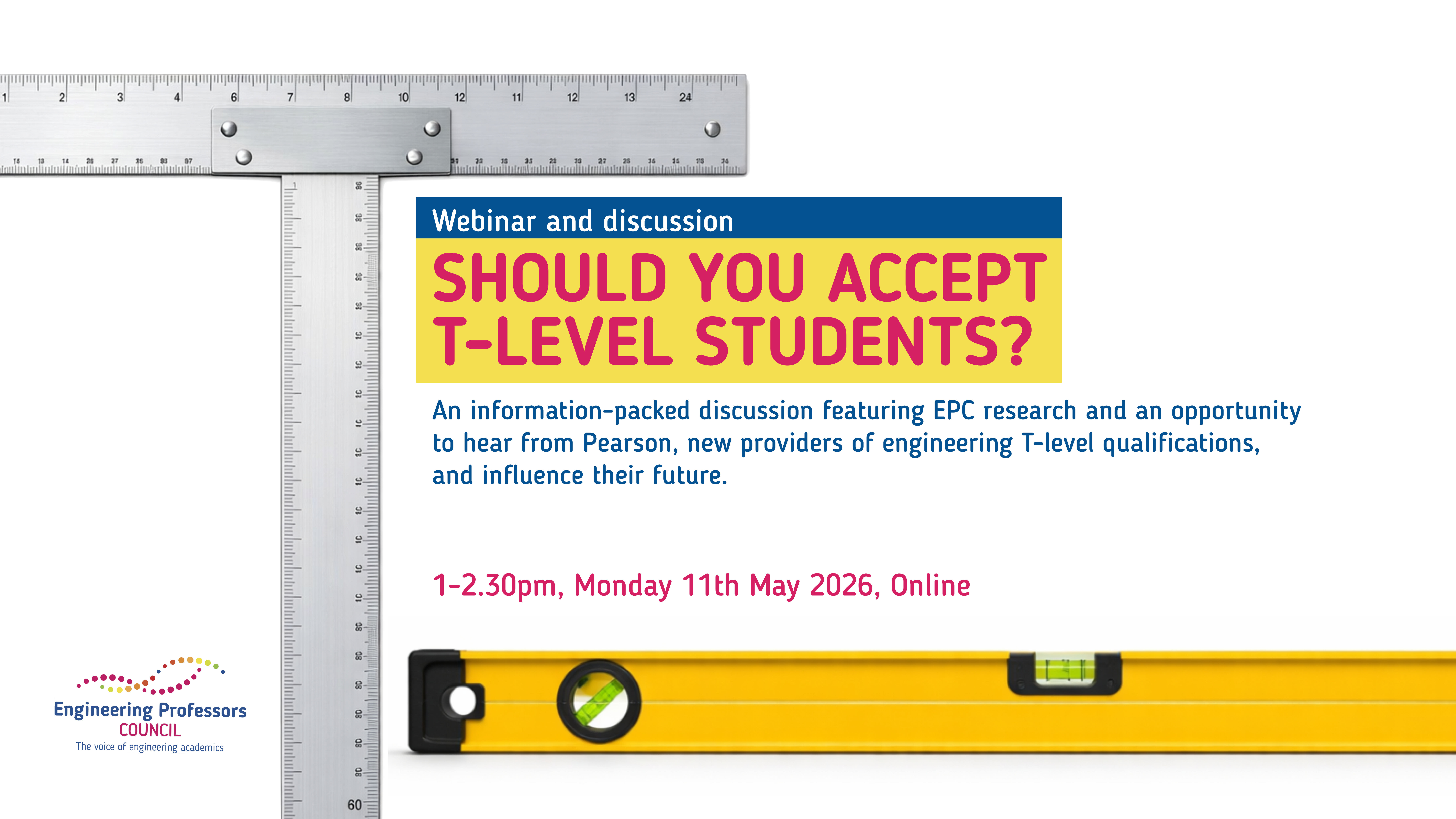 As part of the contract, Pearson is currently undertaking a review of potential updates and changes to the T Level programmes. This review process has highlighted certain issues with Maths relating to progression to Higher Education. Pearson, in collaboration with the EPC, aims to explore these matters during the webinar event.
